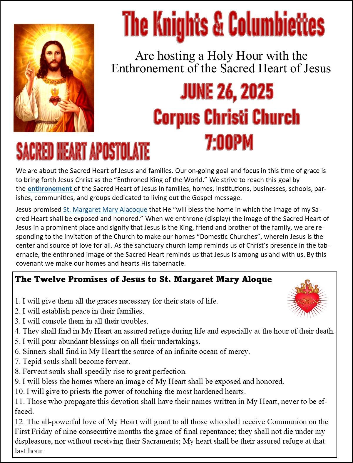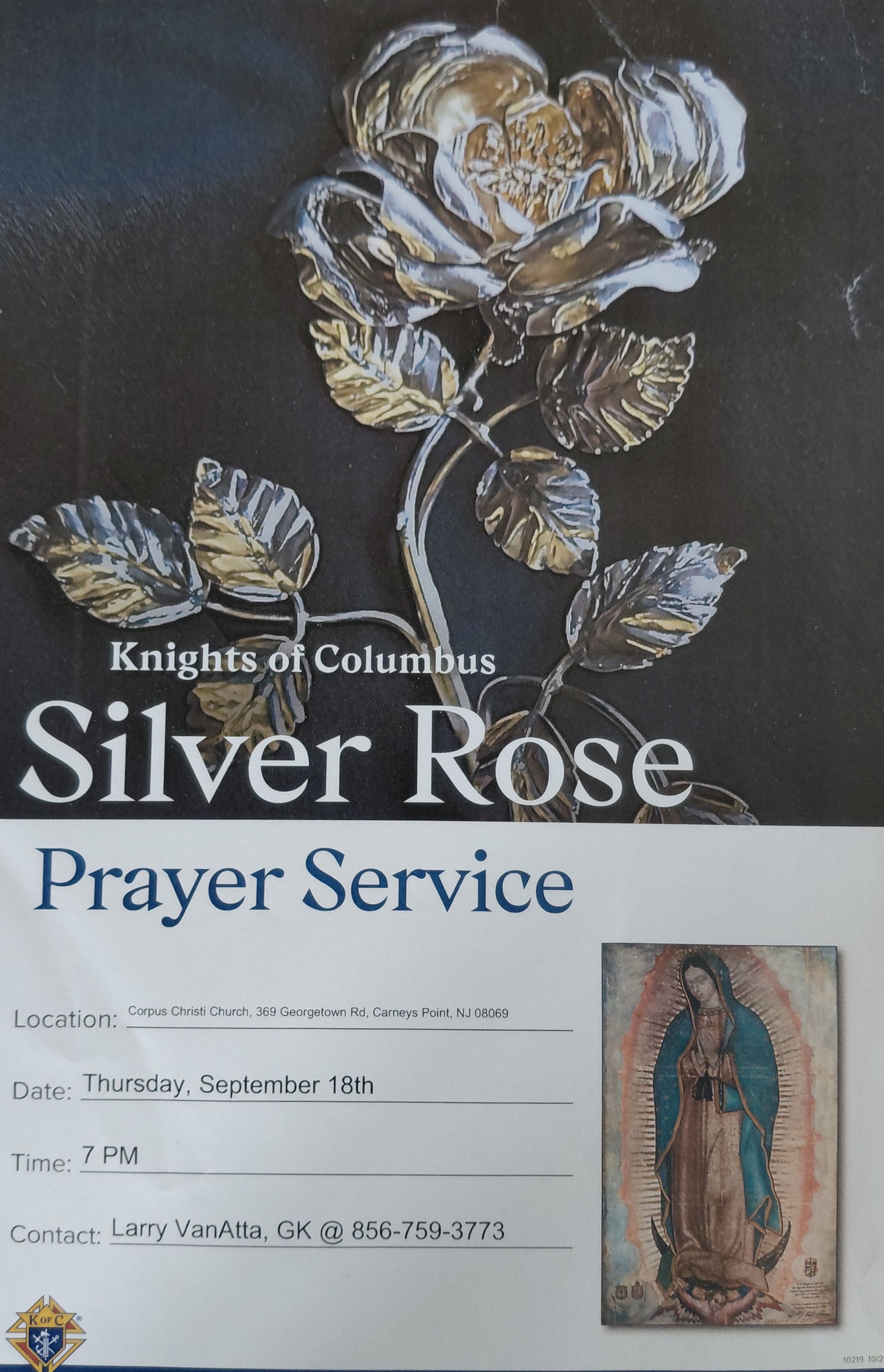 Silver Rose Prayer Service hosted by the Knights of Columbus on Thursday September 18th in Corpus Christi Church at 7pm